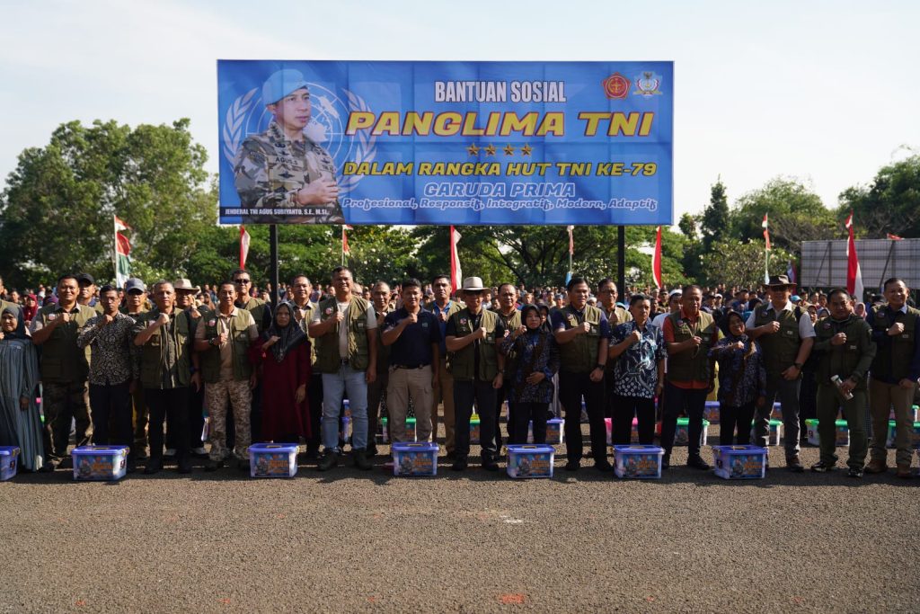 (Puspen TNI). Panglima TNI Jenderal TNI Agus Subiyanto bagikan 500 paket sembako kepada masyarakat yang tinggal di sekitar Markas Pusat Misi Pemeliharaan Perdamaian (PMPP) TNI, bertempat di halaman auditorium PMPP TNI, Sentul, Bogor. Sabtu (14/9/2024).