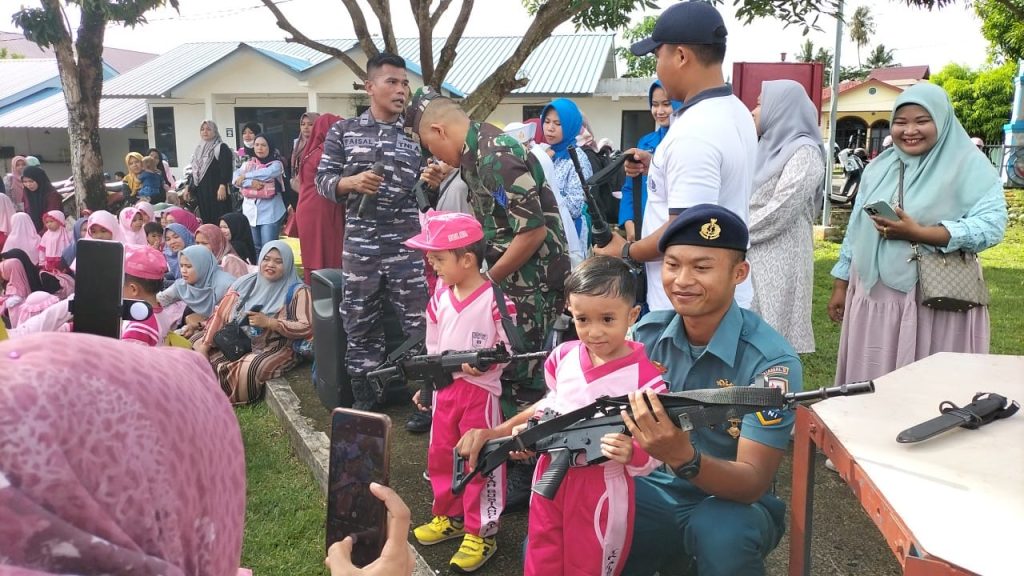 Pada kesempatan tersebut, Personel Posal Gunungsitoli mendampingi anak-anak dengan memperkenalkan TNI Angkatan Laut beserta Alutista yang dimiliki Posal Gunungsitoli, serta memberikan pengetahuan tentang kebaharian serta keliling Posal Gunungsitoli.
