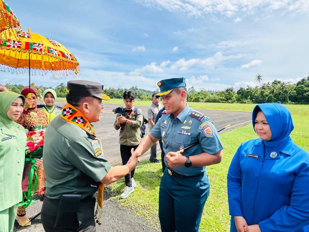 TNI AL, Simeulue,- Komandan Pangkalan TNI AL Simeulue Letkol Laut (P) Oyu Mulia Sukmana, S.T., M.T,.M.Tr. Opsla., didampingi Ketua Jalasenastri Cabang 8 Korcab l DJA l Ny. Meylina Oyu Mulia menghadiri penyambutan Kedatangan Pangdam Iskandar Muda Mayjen TNI Niko Fachrizal, M.Tr.(Han) beserta Ny. Eva Niko Fachrizal, bertempat di Bandar Udara Desa Lasikin, Kecamatan Teupah Tengah, Kabupaten Simeulue, Sabtu (21/09/2024).