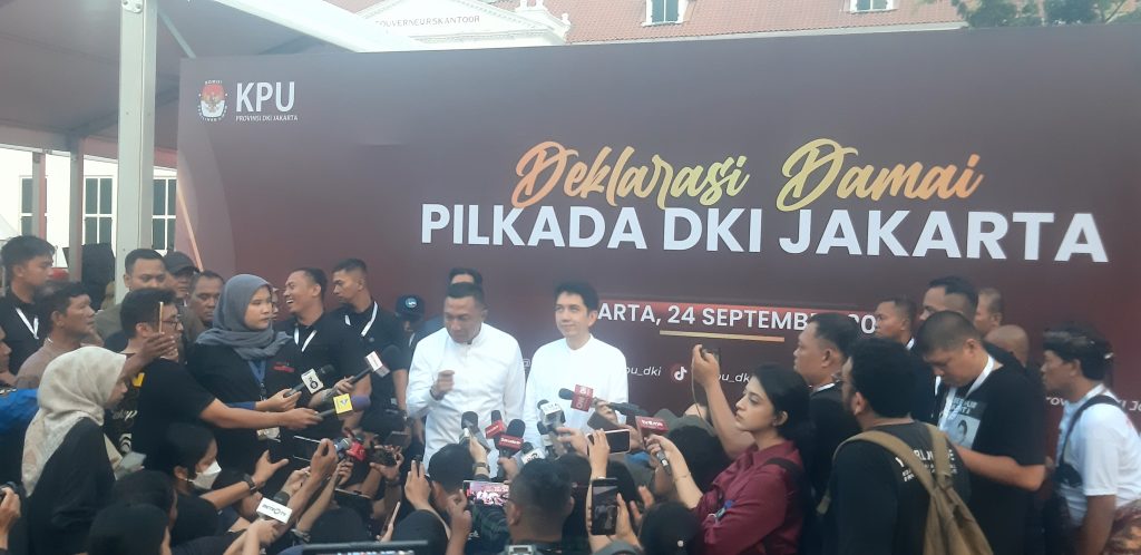 Jakarta – Tiga pasangan calon gubernur dan wakil gubernur Jakarta 2024 telah menandatangani Deklarasi Damai Pilgub Jakarta di Kota Tua Jakarta Barat, hari ini, Selasa, 24 September 2024.