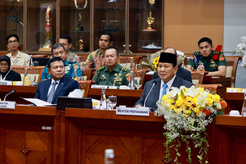 Jakarta – Menteri Pertahanan RI Prabowo Subianto didampingi Wakil Menteri Pertahanan RI M. Herindra, menghadiri rapat kerja (raker) bersama Komisi I DPR terkait persetujuan sejumlah Rancangan Undang-Undang (RUU) Kerja Sama Bidang Pertahanan, menjelang akhir jabatan periode 2019-2024. Dalam rapat kerja yang dilaksanakan di gedung Nusantara II, DPR RI, Senayan, Jakarta Pusat, pada Rabu (25/9/2024) ini, Ketua Komisi I DPR RI Meutya Hafid bertindak sebagai pimpinan rapat.