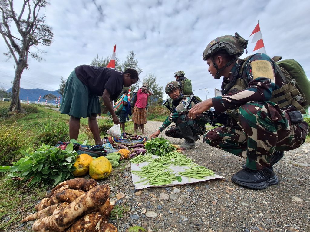 Komandan Satgas Yonif 509 Kostrad, Letkol Inf Dian Dessiawan Setyadi, telah menekankan kepada para Prajurit TNI bahwa kegiatan membantu kesulitan masyarakat di daerah tugas merupakan hal yang perlu dilakukan saat melaksanakan tugas pokok pengamanan wilayah. Oleh karenanya, hari Jumat tersebut, para Prajurit TNI memanfaatkan waktu pengamanan Pos dengan membantu perekonomian warga yang berjualan hasil tani.