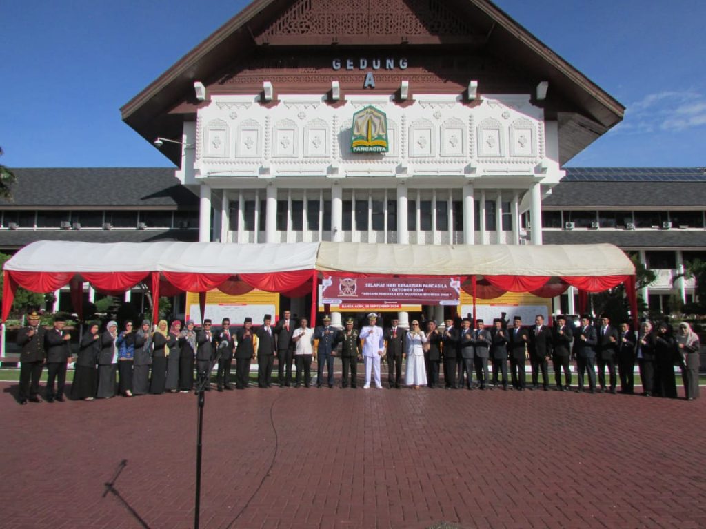 TNI AL, Sabang,- Komandan Lanal Sabang (Danlanal Sabang) Kolonel Laut (P) Gita Muharam, M.Sc., beserta Unsur Forkopimda Provinsi Aceh hadir sekaligus mengikuti Upacara dalam rangka memperingati Hari Kesaktian Pancasila Tahun 2024, bertempat di Lapangan Utama Kantor Gubernur Aceh, Selasa (01/10/2024).