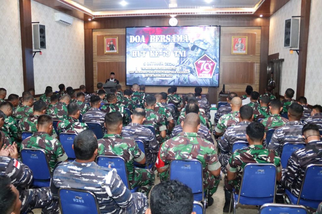 TNI AL, Tanjung Balai,- Lanal Tanjung Balai Asahan bersama Kodim 0208/Asahan menggelar acara Doa Bersama untuk memperingati Hari Ulang Tahun TNI Ke-79 pada tanggal 5 Oktober 2024, di Aula Pandawa Sakti Makodim 0208/AS, Jalan Jendral Sudirman, Kelurahan Mekar Baru, Kecamatan Kisaran Barat, Asahan. Kegiatan ini dihadiri oleh Danlanal TBA Letkol Laut (P) Wido Dwi Nugraha, S.E., M.Tr. Opsla., dan Dandim 0208/AS Letkol Inf Muhamad Basserewan, S.Hub. Int., beserta Prajurit Lanal dan Prajurit Kodim. Acara ini diadakan sebagai wujud syukur dan harapan agar TNI senantiasa diberikan berkah dan keselamatan dalam menjalankan tugas mulia menjaga kedaulatan negara, Kamis (3/10/2024).