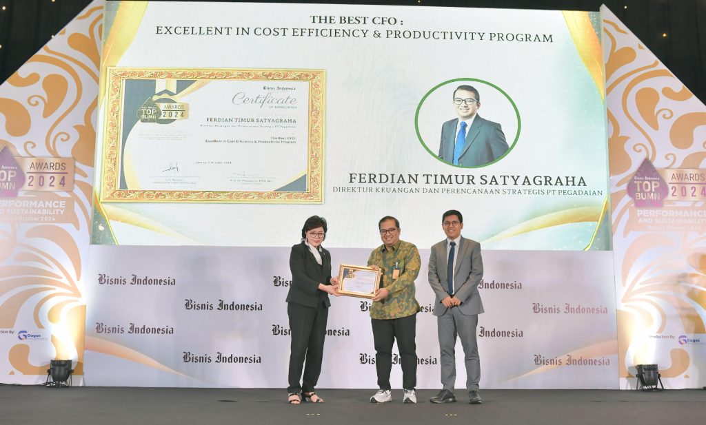 Tidak hanya itu, Direktur Keuangan dan Perencanaan Strategis PT Pegadaian, Ferdian Timur Satyagraha juga meraih penghargaan The Best CFO: Excellent In Cost Efficiently & Productivity Program berdasarkan hasil penjurian oleh Dewan Juri Independen, diantaranya Wakil Menteri Keuangan Kabinet Kerja Periode 2014-2019 Prof. Dr. Mardiasmo, MBA., Akt, Finance & Banking Faculty Member Prasetya Mulya Business School, Wijantini, serta Direktur Bisnis Indonesia, Hery Trianto.