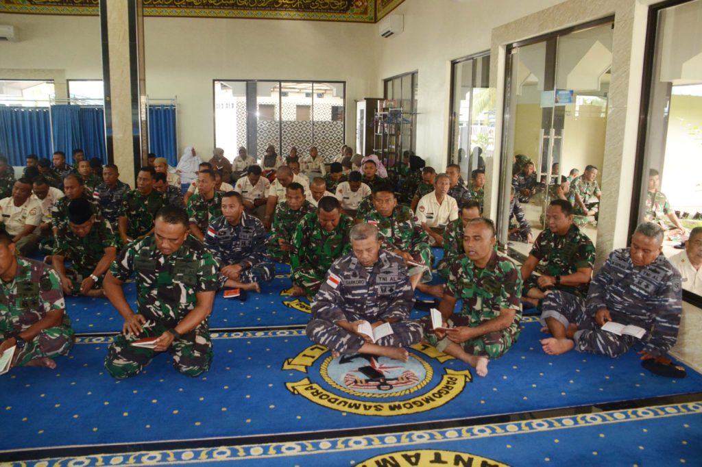 Doa bersama yang dilaksanakan serentak oleh TNI (Matra Darat, Laut dan Udara) diseluruh Indonesia ini merupakan ucapan sebagai bentuk rasa syukur kepada Tuhan Yang Maha Esa dalam menyambut peringatan HUT Ke-79 TNI Tahun 2024. Kegiatan Doa Bersama juga terhubung secara Vicon/zoom dengan Pusat di Silang Monas Jakarta dan untuk Lantamal I dilaksanakan di dua tempat, untuk yang beragama Isam di Masjid Al-Abrar Mako Lantamal I dan bagi yang beragama Kristen dan Katholik di Gedung Kosheri Mako Lantamal I.