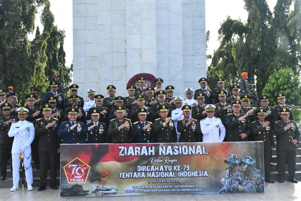 TNI AL, Belawan,- Komandan Pangkalan Utama TNI Angkatan Laut (Danlantamal) I, Brigjen TNI (Mar) Jasiman Purba, S.E., CHRMP., yang diwakilkan Pjs. Wadan Lantamal I Kolonel Laut (P) Hendrik Kurniawan, M.Tr. Hanla., M.M., melaksanakan Ziarah Nasional bersama Unsur Pimpinan TNI yang ada di wilayah Medan dalam rangka menyambut HUT Ke-79 TNI, dengan mengusung tema “TNI Modern Bersama Rakyat Siap Mengawal Suksesi Kepemimpinan Untuk Indonesia Emas”, bertempat di Taman Makam Pahlawan Bukit Barisan, Jalan Sisingamangaraja, Medan, Sumatera Utara, Jumat (04/10/2024).