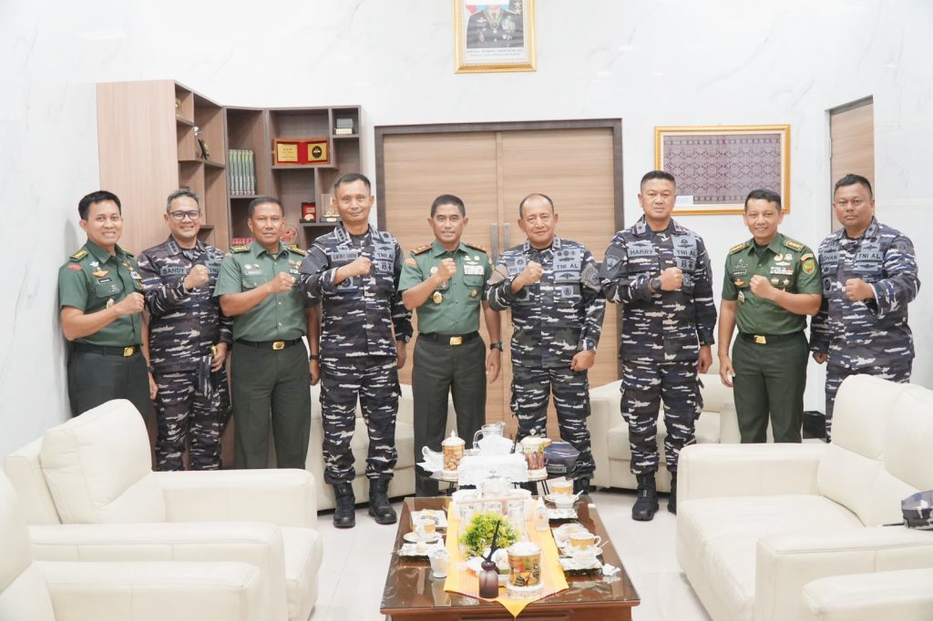 TNI AL–Dispenlantamal3. Komandan Pangkalan Utama TNI Angkatan Laut (Danlantamal) III Jakarta Brigjen TNI (Mar) Harry Indarto, S.E., M.M. mendampingi Panglima Komando Armada (Pangkoarmada) I Laksda TNI Dr. Yoos Suryono Hadi, M.Tr.(Han)., M.Tr.Opsla., CHRMP. melaksanakan courtesy call (kunjungan kehormatan) kepada Pangdam II/Sriwijaya Mayjen TNI M. Naudi Nurdika, S.I.P., M.Si., M.Tr.Han bertempat di Markas Kodam II/Sriwijaya Jl. Jenderal Sudirman KM 3.5 Palembang, Sumatera Selatan, Selasa (08/10/2024).