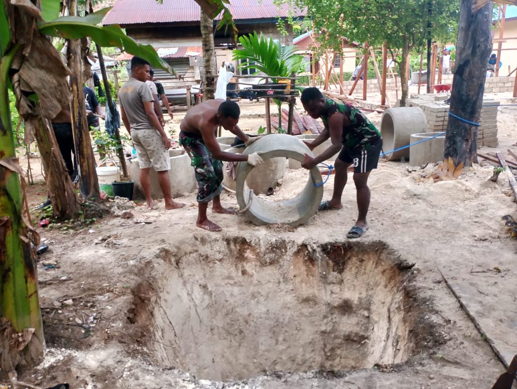 Raja Ampat – Angota Satgas TMMD Ke-122 Kodim 1805/Raja Ampat melaksanakan kegiatan gotong-royong melakukan pemasangan cincin sumur gali di Kampung Saporkren, Distrik Waigeo Selatan, Kab. Raja Ampat, Kamis (10/10/2024). Kegiatan ini merupakan bagian dari program TNI Manunggal Membangun Desa (TMMD) yang bertujuan untuk meningkatkan infrastruktur dan fasilitas umum di wilayah tersebut.
