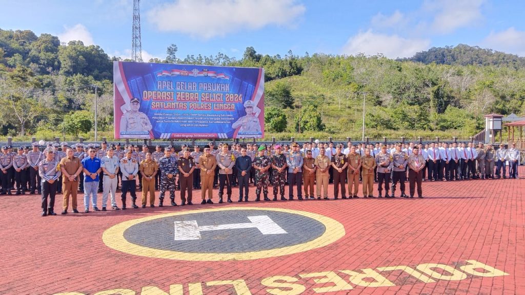 TNI AL, Dabo Singkep,- Komandan Lanal Dabo Singkep (Danlanal DBS) Letkol Laut (P) Tri Hermawan MA, M.Tr.Opsla., CTMP., menghadiri Apel Gelar Pasukan Operasi Zebra Seligi 2024, bertempat di Lapangan Apel Tribrata Mako Polres Lingga, Senin (14/10/2024).