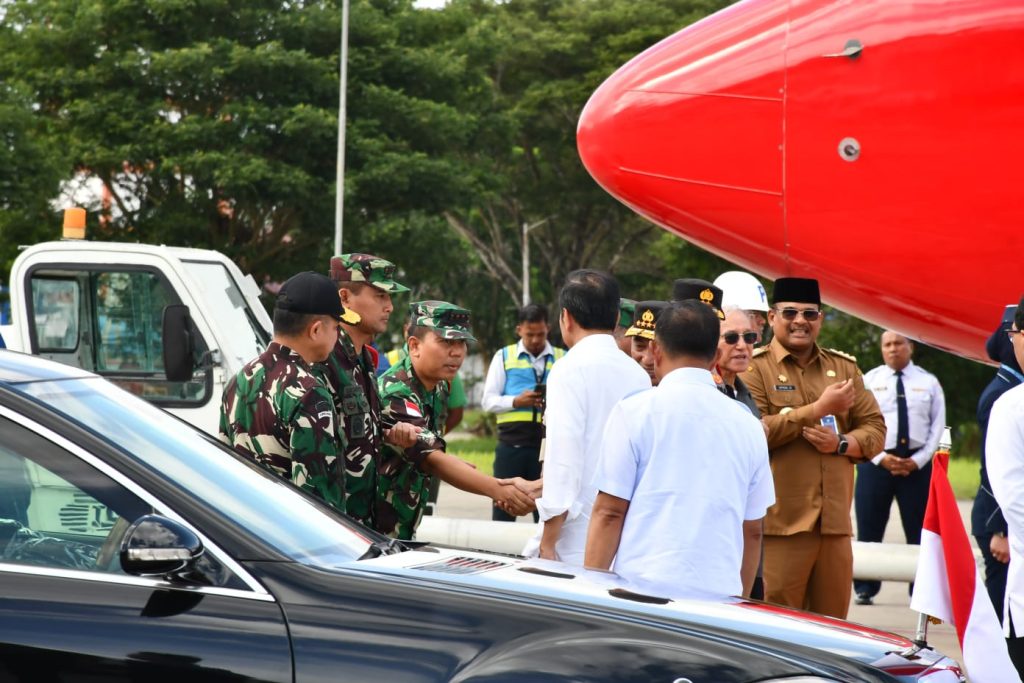 TNI AL, Sabang,- Komandan Lanal Sabang (Danlanal Sabang) Kolonel Laut (P) Gita Muharam, M.Sc., beserta Unsur Forkopimda Provinsi Aceh sambut kedatangan Presiden RI Ir. H. Joko Widodo beserta rombongan di Provinsi Aceh dalam rangka kunjungan kerja Peresmian IJD (Inpres Jalan Daerah) dan Peresmian Gedung Pusat Aneuk Muda Aceh Unggul Hebat Kabupaten Aceh Besar, dengan menggunakan Pesawat BBJ2/A-001, bertempat di Bandar Udara Internasional Sultan Iskandar Muda, Kecamatan Blang Bintang, Kabupaten Aceh Besar, Selasa (15/10/2024).