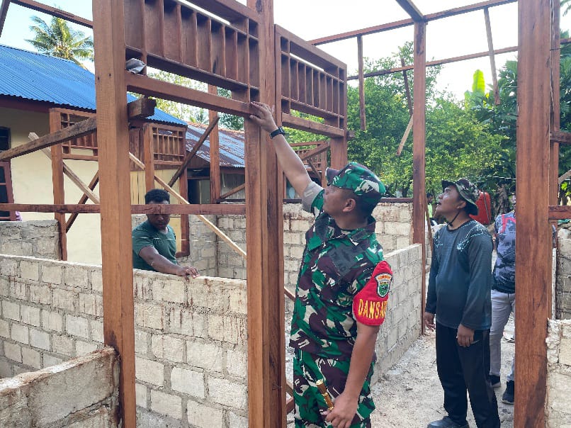 Raja Ampat – Komandan Satgas TMMD Ke-122 Kodim 1805/Raja Ampat Letkol Czi Tri Wibowo Angga Astono di dampingi Kapten Inf Marthen Luter Sa’bi melaksanakan peninjauan sasaran fisik yaitu rehab RTLH milik Ibu Laode Mambrasar di Kampung Saporkren, Distrik Kofiau, Kab. Raja Ampat, Rabu (16/10/2024).