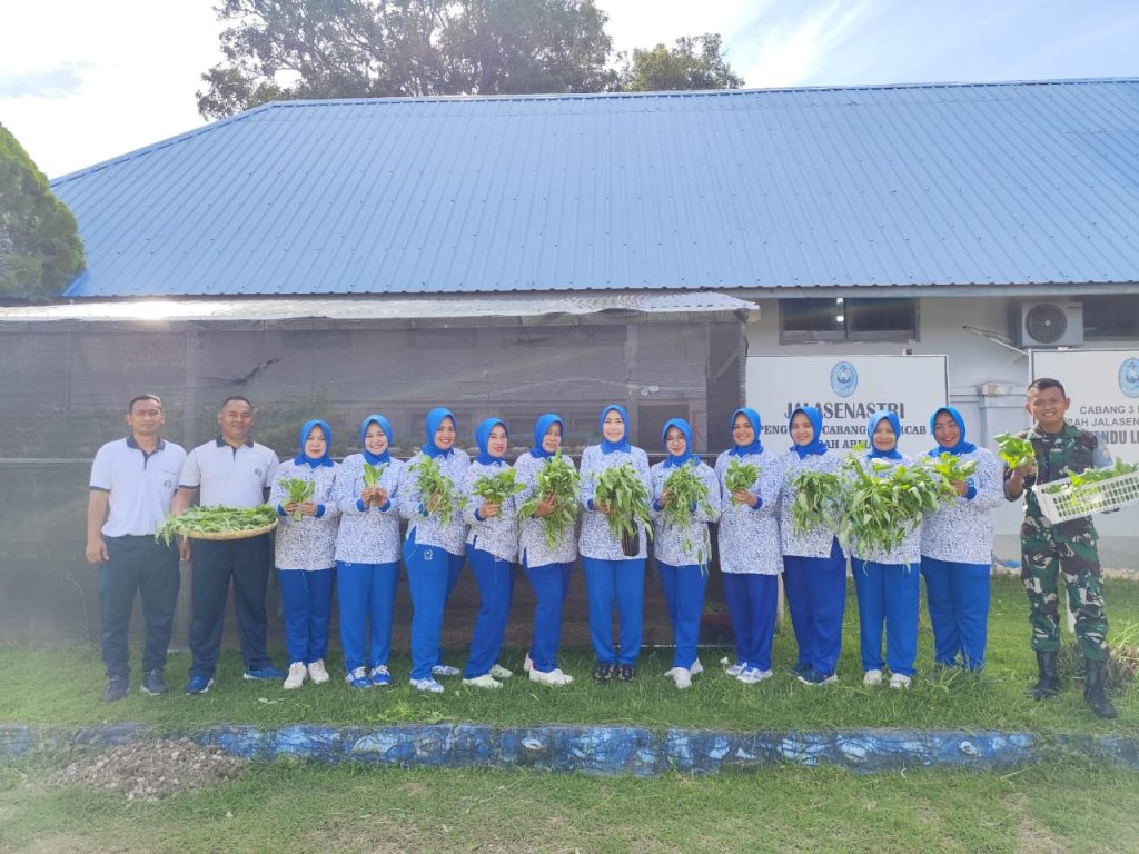 TNI AL, Sabang,- Dalam Rangka memperkuat Ketahanan Pangan, Ketua Jalasenastri Cabang 3 Korcab I DJA I, Ny. Tika Muharam melaksanakan Panen Ketahanan Pangan Hidroponik berupa Tanaman Kangkung dan Pakcoy, bertempat di Lanal Sabang Cabang 3 DJA I, Jalan Yos Sudarso, Kecamatan Sukakarya, Kota Sabang, Jumat (18/10/2024).