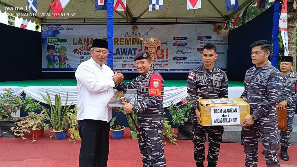 TNI AL, Kepulauan Anambas,- Masih dalam rangkaian memperingati Hari Ulang Tahun Ke-79 Tentara Nasional Indonesia Tahun 2024, Pangkalan TNI Angkatan Laut Tarempa menggelar Lomba Shalawat Nabi Muhammad SAW se-Kabupaten Kepulauan Anambas, dengan tajuk “Lanal Tarempa Bershalawat”, dibuka oleh Bupati Kepulauan Anambas H. Abdul Haris, S.H., M.H.,