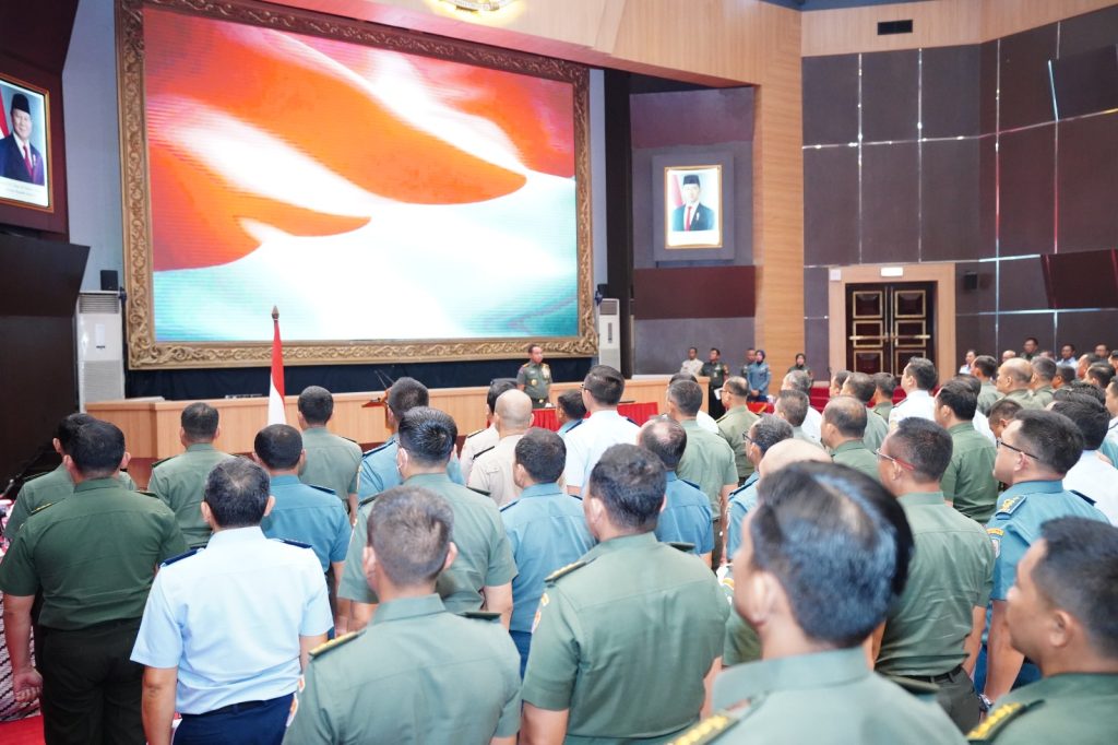 Puspen TNI – Panglima TNI Jenderal TNI Agus Subiyanto secara resmi menutup Latihan Penyusunan Rencana Kontijensi (Renkon) TNI Operasi Militer Perang (OMP) Geladi Yudha Dharma bagi Perwira Siswa (Pasis) Pendidikan Reguler Angkatan LII Sekolah Staf dan Komando (Sesko) TNI Tahun Anggaran 2024, bertempat di Aula Gatot Subroto Mabes TNI, Cilangkap, Jakarta Timur, Kamis (31/10/2024).