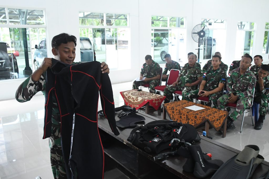 TN AL, Tanjung Balai,- Prajurit Lanal Tanjung Balai Asahan mengikuti kegiatan pengenalan dasar alat selam oleh Lettu Laut (P) Abdurohim di Gedung Oswald Siahaan Mako Lanal Tanjung Balai Asahan, Jalan Tanjung Berombang, Asahan Mati, Kecamatan Tanjungbalai, Kabupaten Asahan, Selasa (5/11/2024).