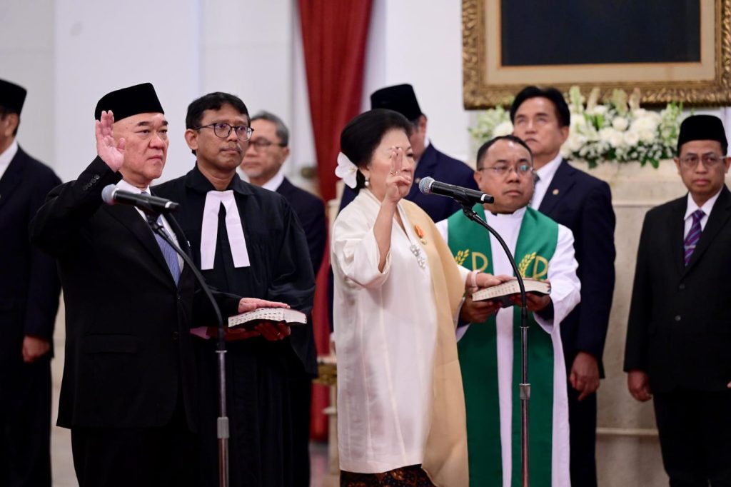 (Puspen TNI). Panglima TNI Jenderal TNI Agus Subiyanto menghadiri acara Pelantikan Wakil Ketua Anggota Dewan Ekonomi Nasional (DEN) Mari Elka Pangestu dan Anggota Dewan Ekonomi Nasional (DEN), yang dipimpin Presiden RI Prabowo Subianto bertempat di Istana Negara, Jakarta Pusat, Selasa (5/11/2024).