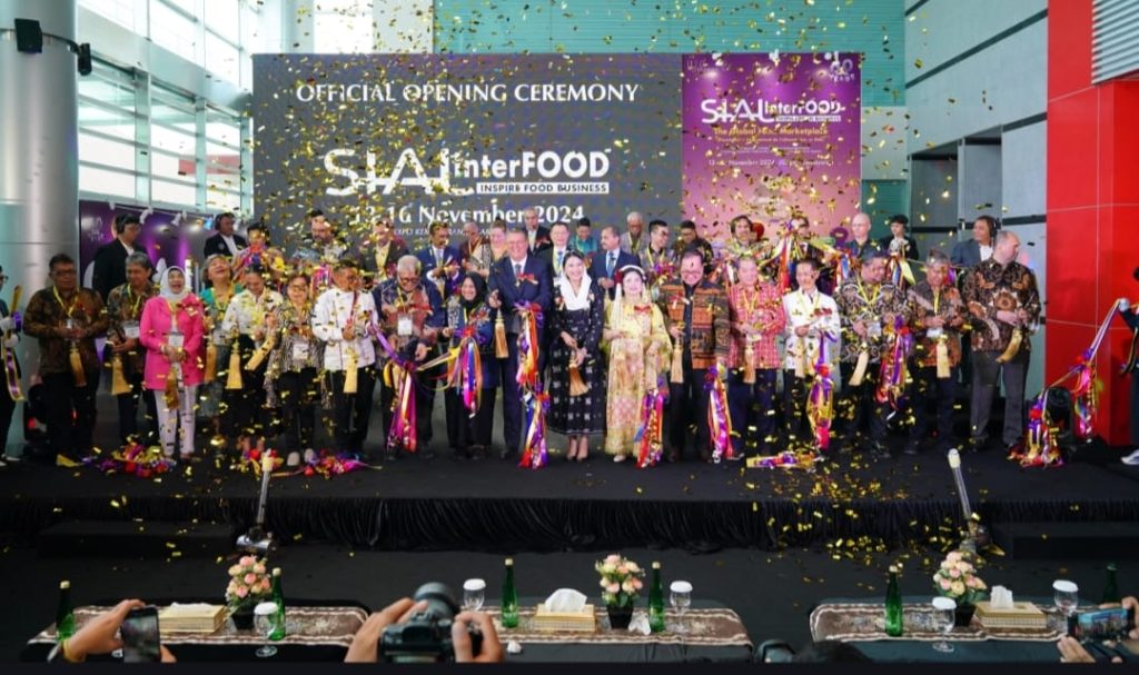 Jakarta, 13 November 2024 – Gabungan Produsen Makanan dan Minuman Indonesia (Gapmmi) memproyeksikan pertumbuhan industri makanan dan minuman (mamin) nasional mencapai 5 % pada 2024. melampaui pertumbuhan ekonomi nasional kuartal Ill yang tercatat sebesar 4 95 %. Hal ini menegaskan peran strategis sektor makanan dan minuman sebagai pilar penting dalam mendukung kpertumbuhan ekonomi Indonesia yang berkelanjutan Sejalan dengan tren positif ini, SIAL Interfood 2024 resmi dbuka hari ini di Jakarta International Expo Kemayoran Jakarta Sebagai pameran ke-25 yang dikenal sebagai “The Global Food Marketplace” atau Salon International de I’Alimentation (SIAL), Pameran ini telah berkembang menjadi salah satu pameran terbesar di Asia Tenggara, menarik perhatian luas dan berbagai kalangan dalam industri makanan dan minuman. Pameran yang berlangsung dan 13 hingga 16 November 2024 ini menampilkan lebih dari 1.200 peserta dan 25 negara dengan 150 pelaku UMKM dan diharapkan mampu menarik hingga 90.000 pengunjung selama empat hari penyelenggaraannya. Pameran ini digelar bersamaan dengan Seafood Show Asia Expo 2024 dan All Indonesia Cool Tech Expo 2024.