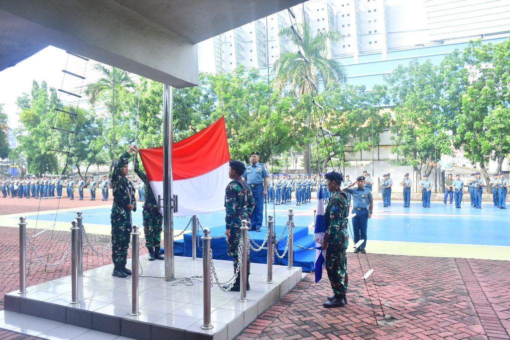 TNI AL-Dispenlantamal3. Komandan Pangkalan Utama TNI Angkatan Laut (Danlantamal) III Jakarta Brigjen TNI (Mar) Harry Indarto, S.E., M.M. diwakili Pabanren Srena Lantamal III Jakarta Letkol Laut (S) J. Eko Priswanto, S.E. menggelar apel gabungan dan upacara bendera yang diikuti seluruh prajurit dan Pegawai Negeri Sipil (PNS) di lingkungan Lantamal III Jakarta dengan membacakan amanat Kepala Staf Angkatan Laut (Kasal) Laksamana TNI Dr. Muhammad Ali, S.E., M.M., M.Tr.Opsla. bertempat di lapangan apel Mako Lantamal III Jakarta Jl. Gunung Sahari No. 2, Jakarta Utara, Senin (17/11/2024).