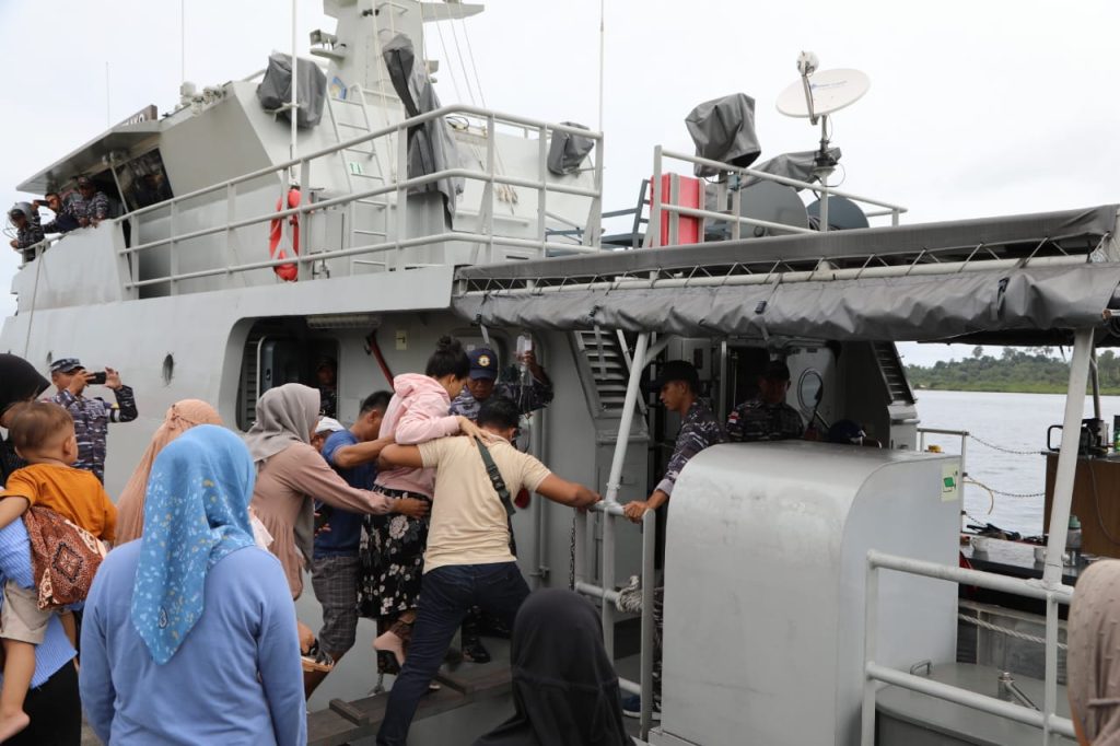 TNI AL, Nias Selatan,- Aksi Cepat Tanggap KAL Hinako I- 2-19 dan Pos Binpotmar Pulau Tello Lanal Nias melaksanakan evakuasi warga yang mengalami pendarahan akibat keguguran yang menimpa Nisa Nasution (23 Tahun), dari Dermaga Perikanan Pulau Tello menuju Telukdalam Kabupaten Nias Selatan, Jumat (29/11/2024).