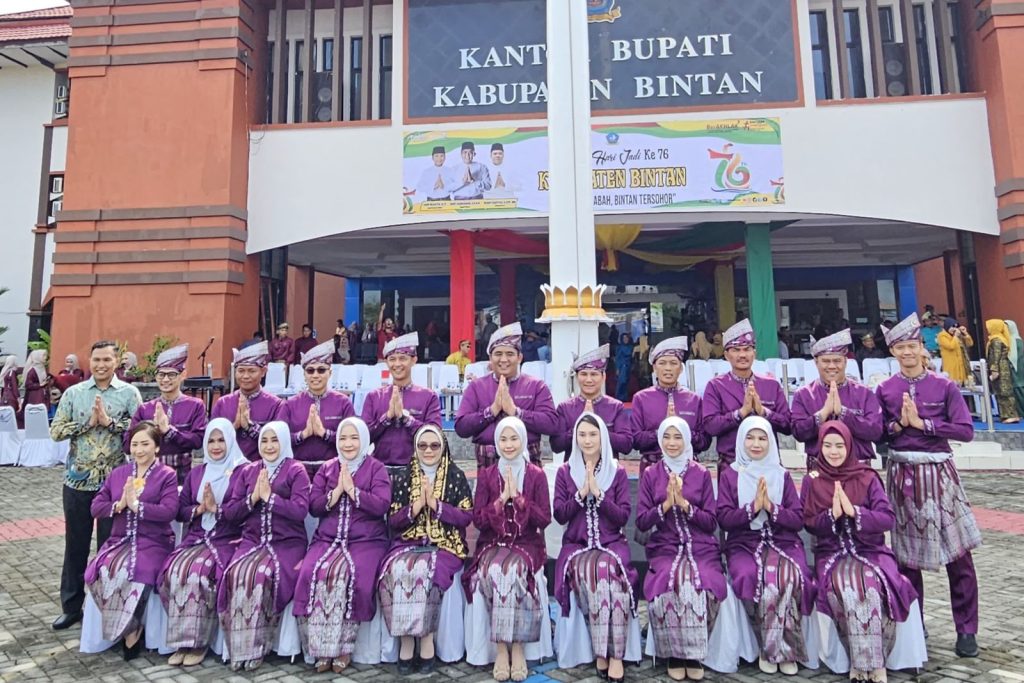 Upacara tersebut dipimpin langsung oleh Bupati Bintan Robby Kurniawan, S.P.W.K., yang dihadiri oleh jajaran Forkopimda Bintan. Pada kesempatan tersebut, Bupati Bintan menyampaikan ucapkan terima kasih atas kehadirannya pada Upacara Peringatan Hari Jadi Ke-76 Kabupaten Bintan. Dengan mengusung tema “Sebati Mengabah, Bintan Tersohor'”, menjadi suatu keharusan bagi kita semua, untuk mewujudkan Bintan yang berdaya saing, sejahtera, bermartabat dan unggul di Indonesia. Dengan penuh kreatifitas dan inovasi dalam mengembangkan kualitas sumber daya manusia dan pengelolaan sumber daya alam, untuk geliat pertumbuhan ekonomi, yang bermuara pada kesejahteraan masyarakat.