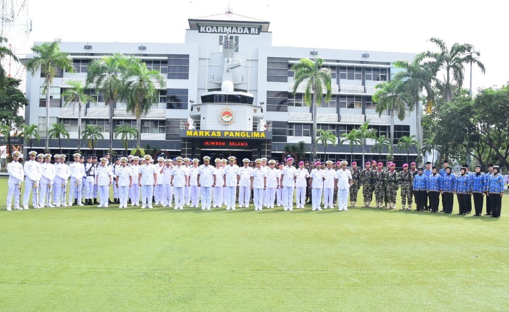TNI AL-Dispenlantamal3. Komandan Pangkalan Utama TNI Angkatan Laut (Danlantamal) III Jakarta Brigjen TNI (Mar) Harry Indarto, S.E., M.M. menghadiri upacara Hari Armada RI tahun 2024, dan sebagai Inspektur Upacara (Irup) Kepala Staf Komando Armada (Kaskoarmada) RI Laksda TNI Eko Wahjono, S.E., M.M. mewakili Pangkoarmada RI Laksdya TNI Dr. Denih Hendrata, S.E., M.M., CHRMP. dengan membacakan amanat Kepala Staf Angkatan Laut (Kasal) Laksamana TNI Dr. Muhammad Ali, S.E., M.M., M.Tr.Opsla. bertempat di lapangan Arafuru Mako Koarmada RI Jl. Gunung Sahari No. 67, Jakarta Pusat, Kamis (05/12/2024).