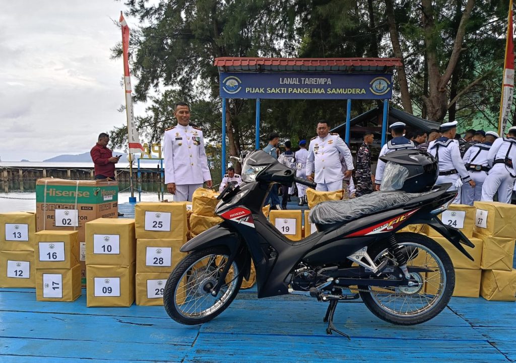 TNI AL, Kepulauan Anambas,- Memeriahkan Peringatan Hari Armada RI Tahun 2024 di Lanal Tarempa, Komandan Lanal Tarempa Letkol Laut (P) Ari Sukmana, S.E., M.Tr.Opsla., memberikan doorprize yang diberikan kepada seluruh Prajurit Lanal Tarempa yang diselenggarakan secara undian dan berlangsung usai pelaksanaan Upacara Hari Armada RI, bertempat di Lapangan Apel Mako Lanal Tarempa, Jalan Hangtuah, Kelurahan Tarempa, Kecamatan Siantan, Kabupaten Kepulauan Anambas, Kamis (5/12/2024).