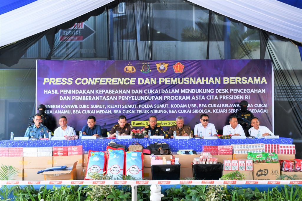 “Melalui sinergi, koordinasi, dan kolaborasi Bea Cukai bersama aparat penegak hukum dan instansi terkait terus berkomitmen melindungi masyarakat khususnya di wilayah Sumatra Utara dari ancaman penyelundupan dan peredaran barang ilegal. Pemusnahan dilakukan melalui pembakaran, penghancuran, dan pemotongan, sehingga barang-barang tidak dapat digunakan lagi,” ujar Sugeng Apriyanto.