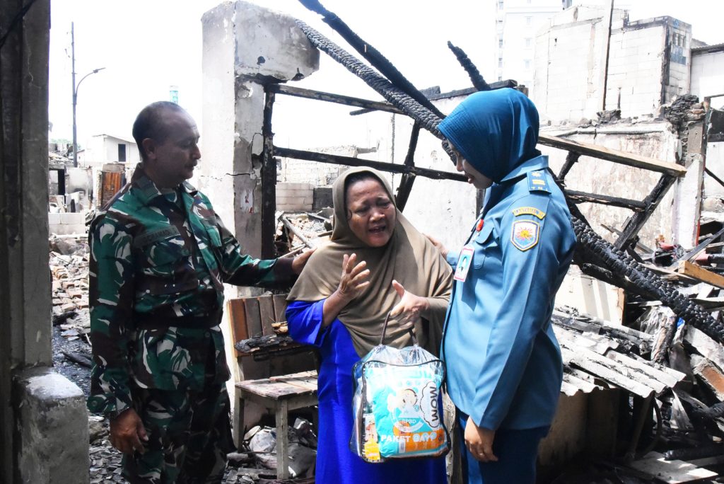 Danlantamal III Jakarta di tempat terpisah mengatakan “TNI Angkatan Laut melalui Lantamal III Jakarta memberikan bantuan Sembako dan mengirimkan personel untuk ikut membantu pembersihan puing-puing bekas kebakaran serta tenaga medis dari Dinas Kesehatan (Diskes) Lantamal III Jakarta dalam penanganan korban kebakaran. Reaksi cepat ini merupakan wujud respon TNI Angkatan Laut melalui Lantamal III Jakarta untuk bersama-sama bersinergi dengan stakeholder dan komponen masyarakat lainnya dalam membantu penanganan pasca musibah. Sebagian besar kebakaran yang terjadi di perumahan diakibatkan oleh tabung gas Liquefied Petroleum Gas (LPG) yang bocor. Kebocoran tabung gas LPG sangat rentan menyulut kebakaran dan ledakan bila terkena api”.