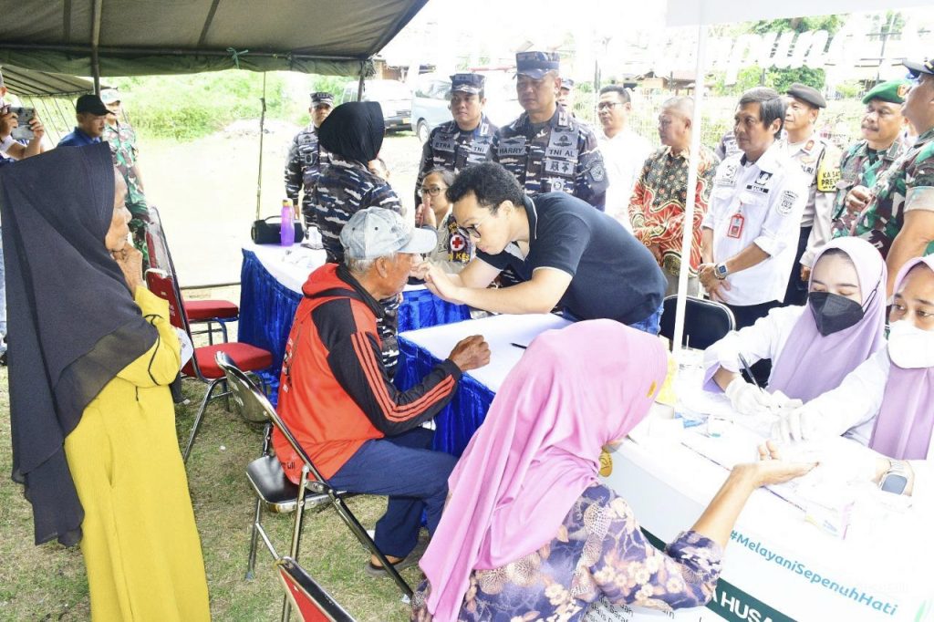 TNI AL-Dispenlantamal3. Komandan Pangkalan Utama TNI Angkatan Laut (Danlantamal) III Jakarta Brigjen TNI (Mar) Harry Indarto, S.E., M.M. menggelar bakti sosial, bakti kesehatan dan makan sehat bergizi dalam rangka memperingati Hari Armada RI tahun 2024 yang dimonitor melalui video conference (Vicon) oleh Kepala Staf Angkatan Laut (Kasal) Laksamana TNI Dr. Muhammad Ali, S.E., M.M., M.Tr.Opsla. dan dihadiri oleh Forum Koordinasi Pimpinan Daerah (Forkopimda) Kabupaten Tangerang bertempat di Desa Surya Bahari, Kecamatan Pakuhaji, Kabupaten Tangerang, Sabtu (14/12/2024).