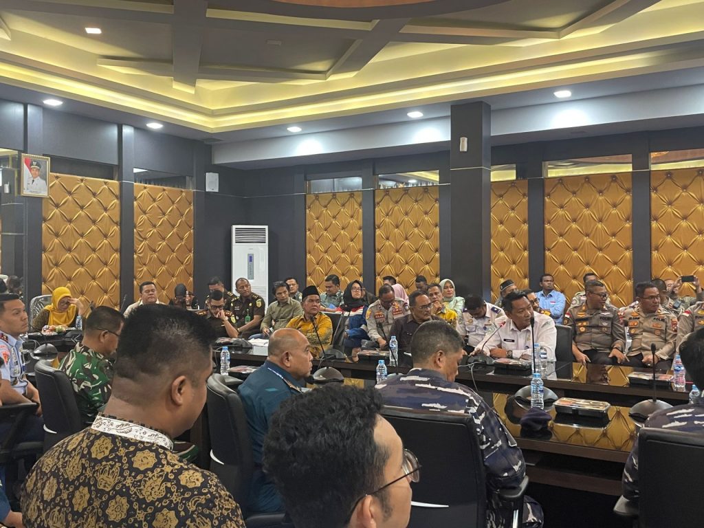 TNI AL, Bintan,- Komandan Lanal Bintan Kolonel Laut (P) Dr. Eko Agus Susanto, S.E., M.M., bersama Forkopimda Bintan selenggarakan rapat menjelang perayaan Natal 2024 dan menyambut Tahun Baru 2025, bertempat di Rupat 2 Kantor Bupati Bintan, Kamis (19/12/2024).
