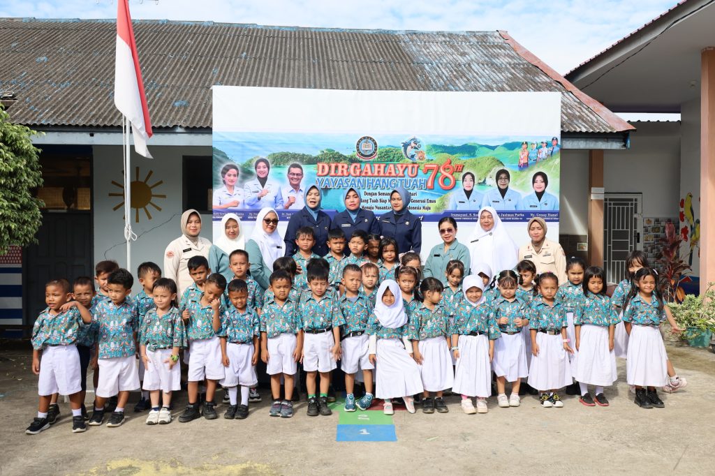 TNI AL, Dumai,- Sekolah Taman Kanak-kanak (TK) Hang Tuah Dumai menggelar Upacara Peringatan Dirgahayu Ke-78 Tahun Yayasan Hang Tuah yang dipimpin oleh Irup Ketua Pengurus Perwakilan Yayasan Hang Tuah Dumai Iramayani, S.Sos., yang diikuti peserta Upacara Guru Pengajar dan Staf serta murid-murid TK Hang Tuah Dumai. Kegiatan diselenggarakan di Halaman TK Hang Tuah Dumai, Jalan Pattimura, Kelurahan Datuk Laksamana, Kecamatan Dumai Barat, Kota Dumai, Selasa, (14/01/2025).
