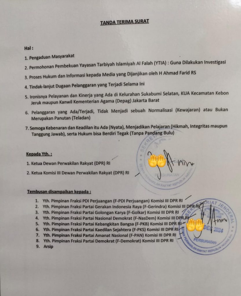 Jakarta – Polemik terkait jual beli tanah antara Haji Mukhtar bin Usman dengan Haji Rahmatullah Sidik atau Ketua Yayasan Tarbiyah Islamiyah Al Falah semakin memanas. Sengketa ini memunculkan berbagai masalah lain seperti status kepemilikan lahan sekolah, izin operasional, hingga dugaan pelanggaran hukum yang melibatkan aparatur dan pengelola yayasan.