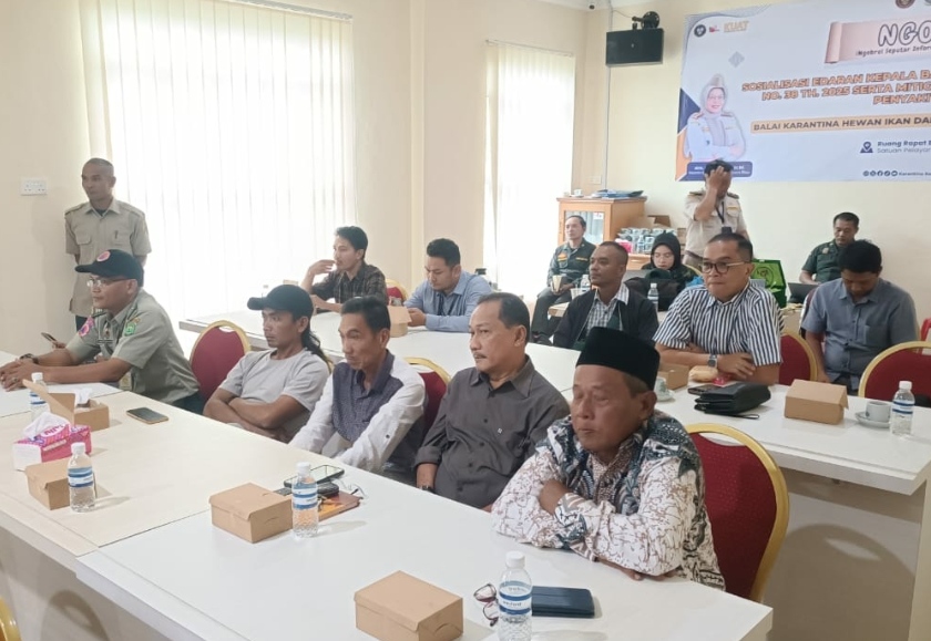 TNI AL, Tanjungpinang,- Dalam rangka upaya antisipasi akan penyebaran Penyakit Mulut dan Kuku (PMK) di wilayah Kepulauan Riau (Kepri), Karantina Kepulauan Riau (Kepri) gelar Ngosip (Ngobrol Seputar Informasi Perkarantinaan) Sosialisasi Edaran Kepala Badan Karantina Indonesia Nomor 38 Tahun 2025 serta Mitigasi Risiko Penyebaran Penyakit PMK, bertempat di Aula Rapat Kantor Satuan Pelayanan Bandara Raja Haji Fisabilillah, Tanjungpinang yang juga dihadiri Danlanal Bintan Kolonel Laut (P) Dr. Eko Agus Susanto, S.E., M.M., Selasa (21/01/2025).