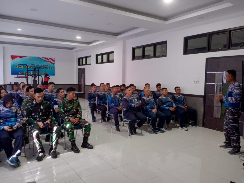 TNI AL, Makassar,- Guna memberikan pemahaman dan bekal pengetahuan hukum kepada personel, Kepala Satuan Provost Satlinlamil 3 Letda Laut (PM) Ardy Windarto memberikan penyuluhan hukum dengan tema “Keselamatan Berlalu Lintas”, bertempat di Aula Mako Satlinlamil 3, Jalan Teuku Umar, Kota Makassar, Kamis (23/1/2025).