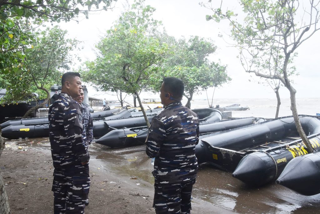 TNI AL-Dispenlantamal3. Komandan Pangkalan Utama TNI Angkatan Laut (Danlantamal) III Jakarta Brigjen TNI (Mar) Harry Indarto, S.E., M.M. terpaksa kembali menghentikan sementara pelaksanaan pembongkaran pagar laut di dua titik, yaitu di perairan Tanjung Pasir dan perairan Kronjo sebagai akibat cuaca buruk disertai angin kencang dan hujan deras, bertempat di Posko Pembongkaran Pagar Laut, Tanjung Pasir, Tangerang, Rabu (29/01/2025).