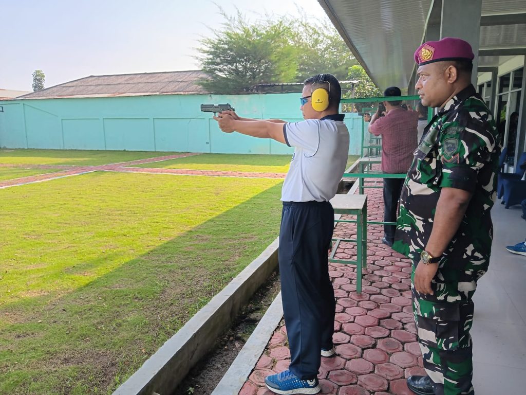 TNI AL, Belawan,- Wadan Lantamal I Kolonel Laut (P) Baharuddin Anwar, S. T., M.M., beserta para PJU Lantamal I melaksanakan Latihan Menembak Pistol, bertempat di Lapangan Tembak Pistol Yonmarhanlan I, Jalan Serma Hanafiah No. 01 Belawan, Sumatera Utara, Rabu (12/2/2025).