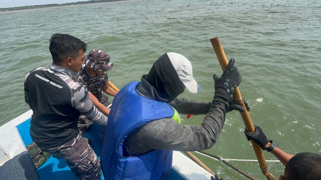 TNI AL-Dispenlantamal3. Komandan Pangkalan Utama TNI Angkatan Laut (Danlantamal) III Jakarta Brigjen TNI (Mar) Harry Indarto, S.E., M.M. kembali memerintahkan pelaksanaan pembongkaran pagar laut di perairan Tanjung Pasir di tengah kendala angin kencang dan ombak tinggi serta menghentikan sementara pembongkaran pagar laut di perairan Kronjo karena faktor cuaca buruk disertai angin kencang dan ombak tinggi, bertempat di Posko Pembongkaran Pagar Laut, Tanjung Pasir, Tangerang, Senin (11/02/2025).