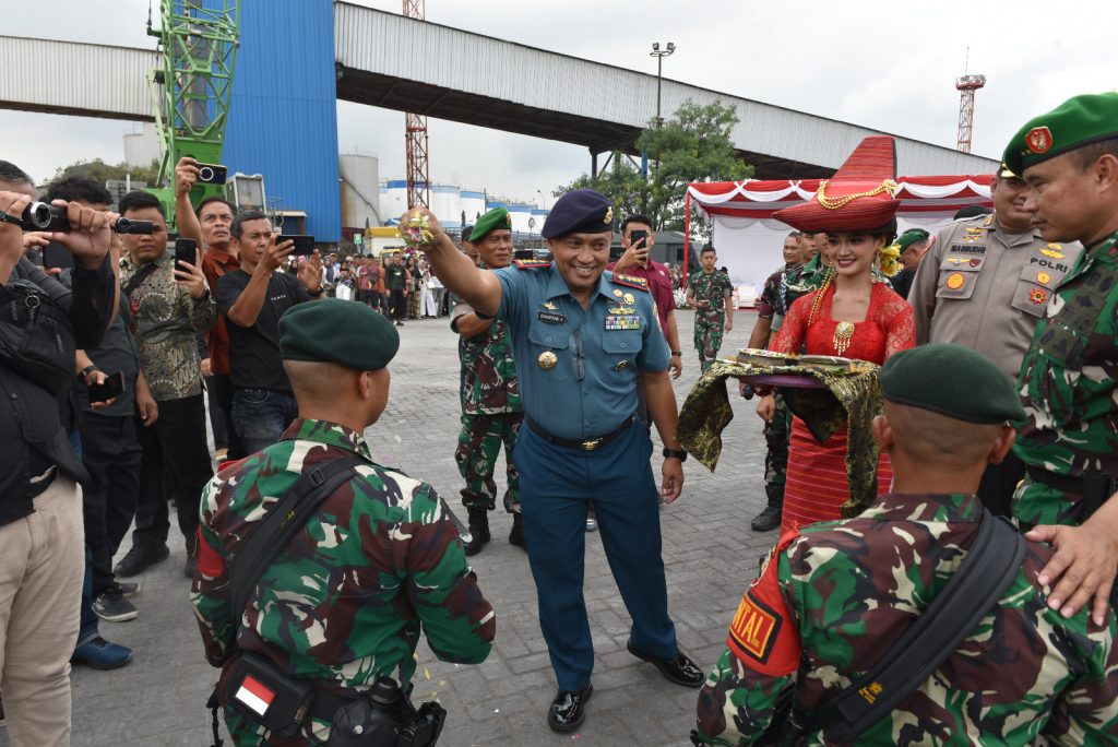 TNI AL, Belawan,- Komandan Pangkalan Utama TNI Angkatan Laut I (DanLantamal I) Brigjen TNI (Mar) Jasiman Purba, S.E., CHRMP., yang diwakili Wadan Lantamal I Kolonel Laut (P) Baharuddin Anwar, S.T., M.M., menghadiri Upacara Pemberangkatan Satgas Pamtas RI-PNG Mobile Yonif 100/PS. Satgas Pamtas ini diberangkatkan dengan menggunakan KRI Teluk Calang-524, bertempat di Dermaga 200 Pelabuhan Umum Ujung Baru Belawan, Kamis (13/2/2025).