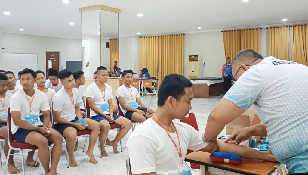 TNI AL-Dispenlantamal3. Komandan Pangkalan Utama TNI Angkatan Laut (Danlantamal) III Jakarta Brigjen TNI (Mar) Harry Indarto, S.E., M.M. selaku Ketua Panitia Daerah (Panda) Lantamal III Jakarta didampingi Wadan Lantamal III Jakarta Kolonel Laut (P) Ranu Samiaji, S.T., M.H., M.Tr.Opsla. selaku Wakil Ketua Panda Lantamal III Jakarta meninjau pelaksanaan tes kesehatan 2 Calon Tamtama Prajurit Karier (Cata PK) TNI Angkatan Laut gelombang I TA 2025 bertempat di gedung serbaguna (GSG) Mako Lantamal III Jakarta Jl. Gunung Sahari No 2, Jakarta Utara, Senin (17/02/2025).