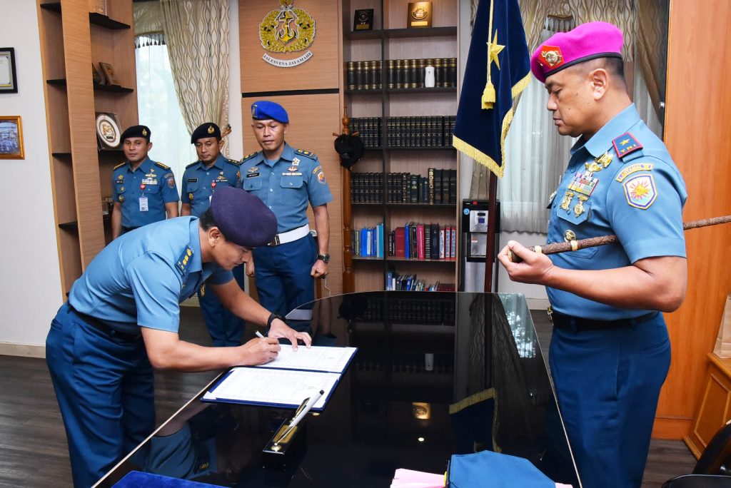 TNI AL-Dispenlantamal3. Komandan Pangkalan Utama TNI Angkatan Laut (Danlantamal) III Jakarta Brigjen TNI (Mar) Harry Indarto, S.E., M.M. memimpin acara pengukuhan Kepala Dinas Angkutan (Kadisang) Lantamal III Jakarta kepada Letkol Laut (T) Ilham Mulyanto, M.Han. bertempat di ruang kerja Danlantamal III Jakarta Jl. Gunung Sahari No. 2, Jakarta Utara, Senin (17/02/2025).