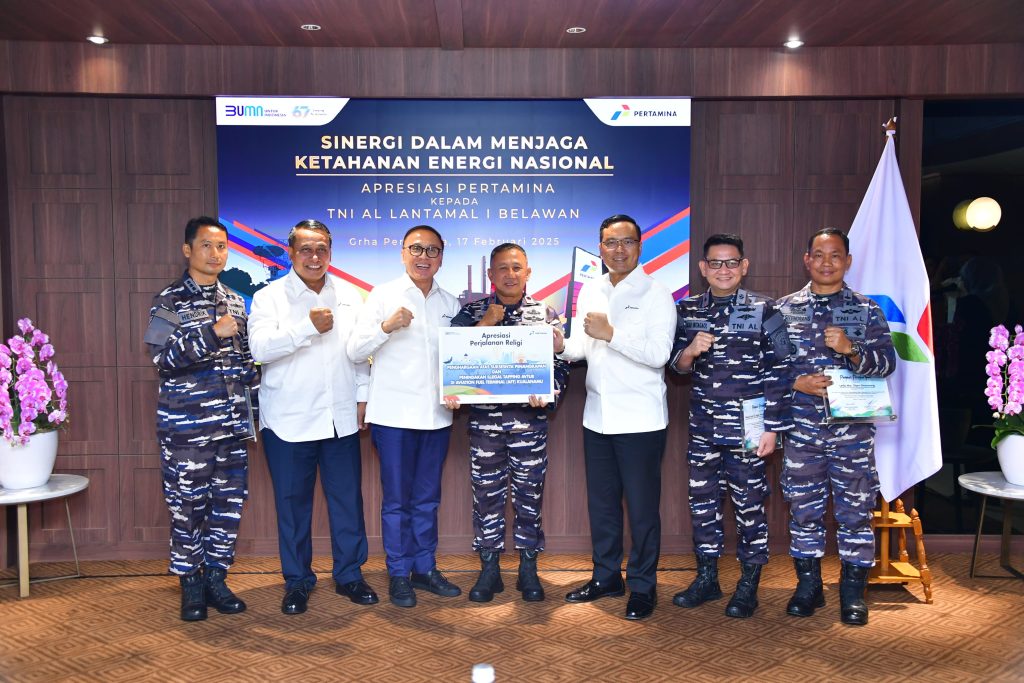 TNI AL, Belawan,- Komandan Pangkalan Utama TNI Angkatan Laut I (Danlantamal I) Brigjen TNI (Mar) Jasiman Purba, S.E., CHMRP., menghadiri undangan Pemberian Apresiasi dan Piagam Penghargaan dari Direktur Utama PT. Pertamina Persero Simon Aloysius Mantiri, bertempat di Executive Lounge, Lantai 23 Gedung Faston–Graha Pertamina, Jalan Medan Merdeka Timur No. 11-13 Jakarta, Senin (17/2/2025).