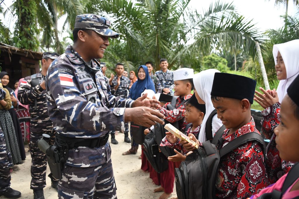 Sebagai bentuk apresiasi, Lanal Tanjung Balai Asahan memberikan santunan berupa tas beserta buku dan alat tulis serta paket sembako yang diberikan kepada warga setempat.