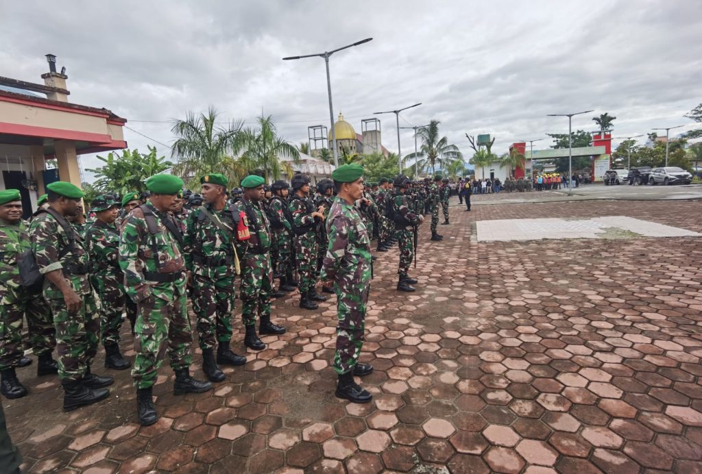Timika – Personel Kodim 1710/Mimika melaksanakan Apel Gelar Pasukan Gabungan TNI-Polri antisipasi keamanan jelang putusan MK sengketa Pilkada Kabupaten Mimika, bertempat di Halaman Gedung Emeneme Youware Jl. Budi Utomo Kel. Timika Indah, Distrik Mimika Baru, Kab. Mimika, Sabtu (22/02/2025).