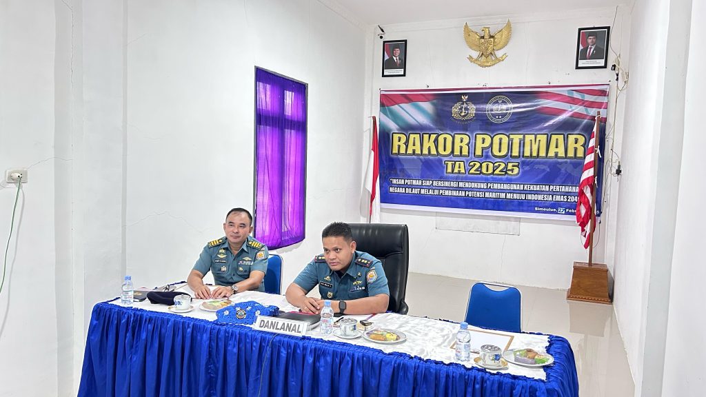 TNI AL, Simeulue,- Komandan Pangkalan TNI Angkatan Laut Simeulue Letkol Laut (P) Oyu Mulia Sukmana, S.T., M.T., M.Tr.Opsla., didampingi oleh Paspotmar Lanal Simeulue Kapten Laut (KH) Arief Rahman Hakim berpartisipasi dalam Rapat Koordinasi Potensi Maritim TNI AL Tahun 2025 yang mengangkat tema “Insan Potmar Siap Bersinergi Mendukung Pembangunan Kekuatan Pertahanan Negara di Laut Melalui Binpotmar Menuju Indonesia Emas Tahun 2045”. Kegiatan ini dilaksanakan secara Video Conference (Vicon), Kamis (27/2/2025).