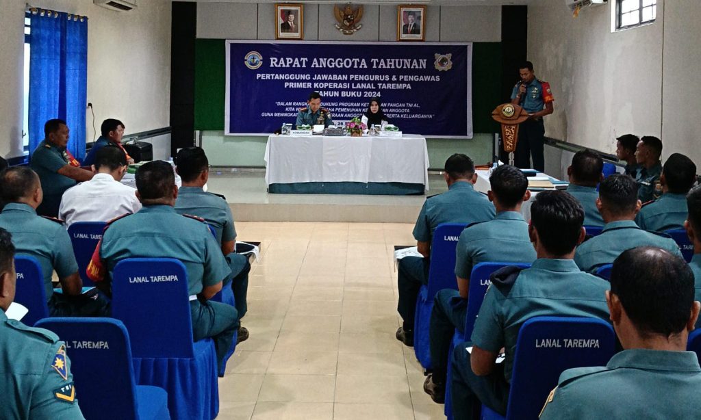 TNI AL, Kepulauan Anambas,- Bertempat di Gedung Napoleon Lanal Tarempa, Jalan Kartini, Kelurahan Tarempa, Kecamatan Siantan, Kabuparen Kepulauan Anambas, Komandan Lanal Tarempa Letkol Laut (P) Ari Sukmana, S.E., M.Tr.Opsla., secara resmi membuka Rapat Anggota Tahunan (RAT) dalam Rapat Anggota Pertanggung Jawaban Pengurus dan Pengawas Primer Koperasi Angkatan Laut (Primkopal) Lanal Tarempa Tahun Buku 2024, Rabu (26/2/2025).
