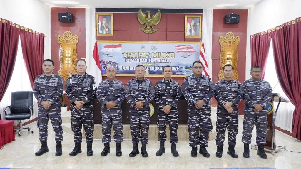 TNI AL, Belawan,- Komandan Pangkalan Utama TNI Angkatan Laut (Danlantamal) I Brigjen TNI (Mar) Jasiman Purba, S.E., CHRMP., melakukan kunjungan kerja ke Markas Komando (Mako) Pangkalan TNI Angkatan Laut (Lanal) Lhokseumawe, Aceh, Jumat (07/03/2025).