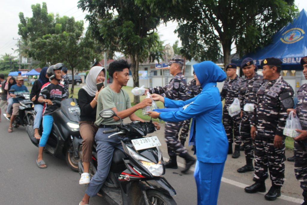 TNI AL, Bengkulu,- Ramadan bulan penuh berkah, banyak kesempatan bagi umat Islam untuk berbagi dengan sesama. Seperti yang dilakukan Pangkalan TNI Angkatan Laut (Lanal) Bengkulu, yaitu berbagi takjil kepada pengendara yang melintas di depan Mako Lanal Bengkulu, Senin (10/3/2025).