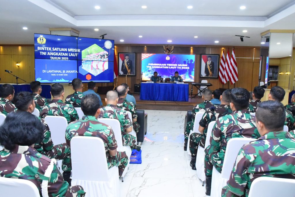TNI AL-Dispenlantamal3. Komandan Pangkalan Utama TNI Angkatan Laut (Danlantamal) III Jakarta Brigjen TNI (Mar) Harry Indarto, S.E., M.M. diwakili Asisten Personalia (Aspers) Danlantamal III Jakarta Kolonel Laut (S) Abu Ali, S.E., M.Tr.Opsla., melaksanakan pembinaan teknik (Bintek) musik TNI Angkatan Laut TA 2025 oleh Kasubdis Binmus Diswatpersal Letkol Laut (KH) Wahyono, S.Pd. mewakili Kadiswatpersal Brigjen TNI (Mar) Mauriadi, S.E., bertempat di gedung serbaguna (GSG) Mako Lantamal III Jakarta Jl. Gunung Sahari No. 2, Jakarta Utara, Rabu (12/03/2025).