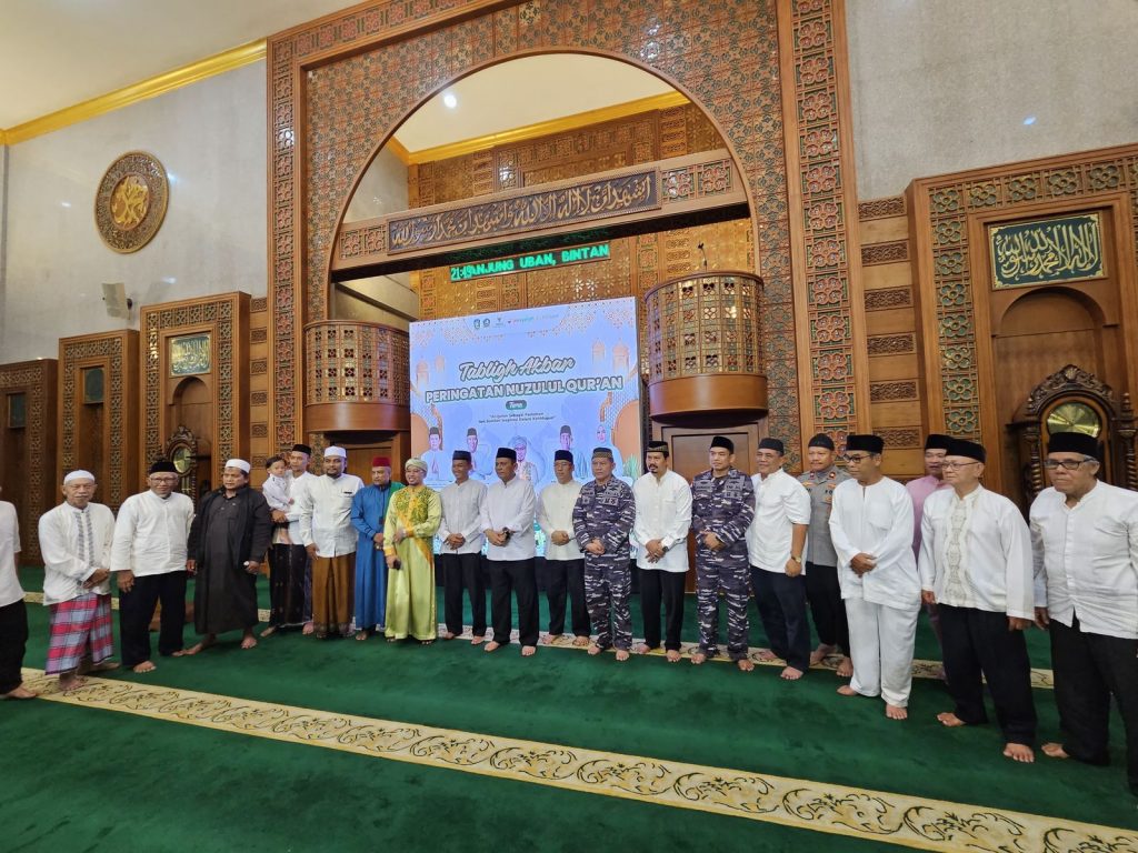 TNI AL, Bintan,- Bertempat di Masjid Baitul Makmur Tanjung Uban Bintan, Komandan Lanal Bintan Kolonel Laut (P) Dr. Eko Agus Susanto, S.E., M.M., menghadiri Tabligh Akbar Peringatan Nuzulul Qur’an 1446 H/2025 M Tingkat Provinsi Kepulauan Riau, dengan penceramah Ustadz Aa Jufri Sahati (H. Ahmad Rustandi, S,Ag., M.Pd., Minggu (16/03/2025).